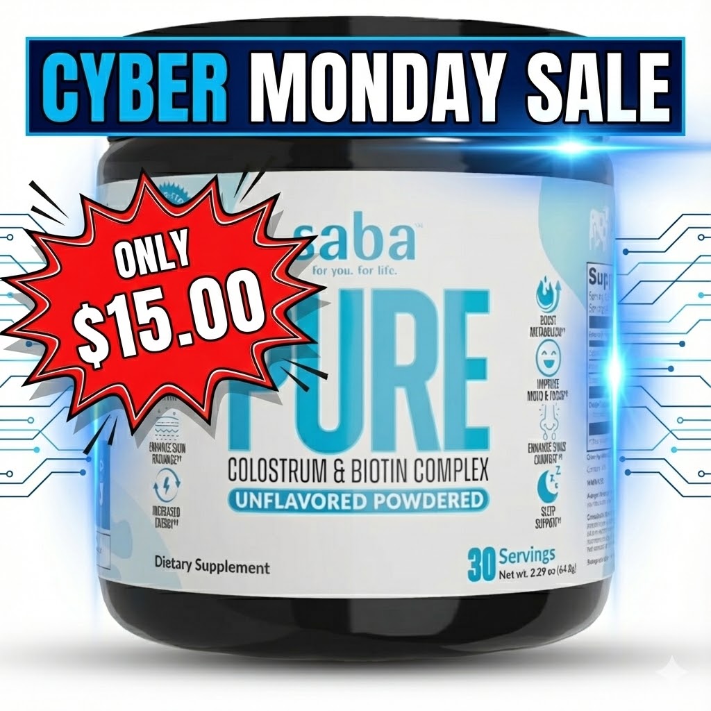 - Ignite Your Family’s Vitality with Foundational Nutrition from Saba Pure Colostrum & Biotin Complex™ Unlock the full potential of your family’s health with Saba Pure – a bioactive formula packed with over 400 nutrients from pure, grass-fed colostrum. Sourced from family-owned farms in the USA, Saba Pure goes beyond a supplement; it’s a catalyst for wellness that supports immunity, digestion, healthy hair growth, rejuvenated skin, reduced stress, and restful sleep. Experience lasting energy, resilience, and vitality that transforms every day for your loved ones. Strengthen Your Body’s Defenses and Rejuvenate Your Health In today’s world, your body’s natural defenses need support. Saba Pure strengthens vital barriers in your skin, gut, lungs, and respiratory system—critical defenses for overall immune health. It shields your family from toxins, allergens, and stress, empowering everyone to thrive no matter what life throws at you. Saba Pure rejuvenates overall health, helping your family stay strong and energetic. Benefits You Can See and Feel Saba Pure strengthens your skin, hair, nails, lungs, and gut, optimizes your microbiome, and activates cellular health. Clinically shown to support immunity, digestive health, reduce inflammation, and enhance recovery, it’s the ultimate supplement for your family’s wellness. How to Take Daily Add Saba Pure to your family’s daily routine by taking one scoop directly in your mouth or mixing it with any cold beverage, yogurt, or ice cream. Do NOT use with hot liquids to preserve its potency.